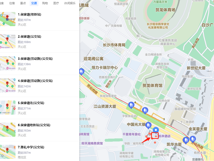 地理位置圖 天心區(qū)勞動(dòng)西路房產(chǎn): 1.區(qū)位優(yōu)勢: 位于賀龍?bào)w育館田漢大劇院斜對面佳逸豪園小區(qū),地處天心區(qū)商業(yè)、生活、文化核心區(qū)域,周邊寫字樓、學(xué)校、醫(yī)院、住宅眾多,人流量大。 2.交通配套: 距侯家塘雙地鐵口20米,多個(gè)公交站點(diǎn);門頭前坪及裙樓地下均有停車場。 3.醫(yī)療配套: 緊鄰湖南省人民醫(yī)院、湖南中醫(yī)藥大學(xué)第一附屬醫(yī)院、湖南省兒童醫(yī)院、中南大學(xué)湘雅二醫(yī)院等大型醫(yī)院。 4.購物配套: 緊鄰叮叮mall、摩天商業(yè)廣場、友誼商城等。 5.教育配套: 附近有華圖教育、星希望教育、中公教育、學(xué)大教育等知名教育培訓(xùn)機(jī)構(gòu)。 6.生態(tài)綠化配套: 5公里內(nèi)有長沙湘江風(fēng)光帶、潮宗街歷史文化街區(qū)、天心閣等景區(qū)。
